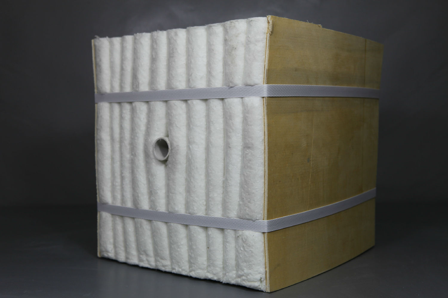 ●長纖維成型毯、模塊、折疊塊:熔融甩絲長纖維100-150mm,纖維直徑均勻3-5μm、渣球含量低,抗拉強(qiáng)度高0.08-0.12MPa,是噴吹纖維的2-3倍。