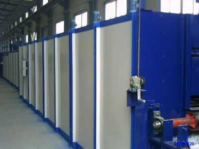 主要用于延壓平板玻璃,微晶玻璃板等制品一次應(yīng)力退火,爐體總長30米以上,最高使用溫度850℃。