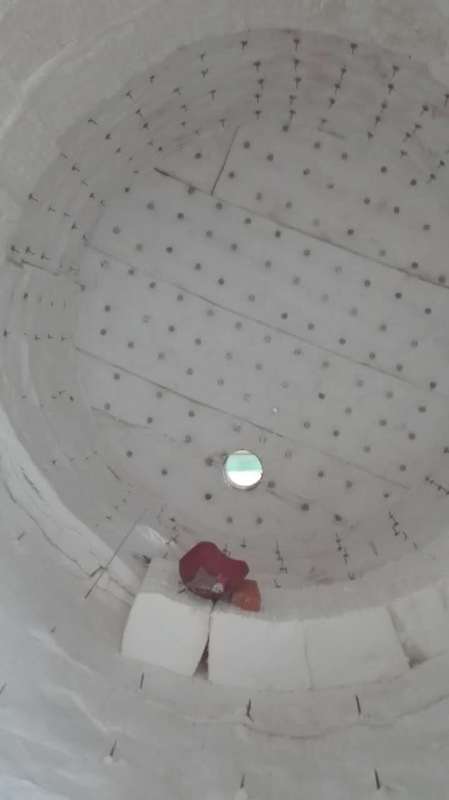 罩式爐纖維爐襯采用層鋪-模塊復(fù)合結(jié)構(gòu),首先節(jié)約鋼材耗量,可降低爐襯總體造價,其次錨固件位于陶瓷纖維層鋪毯與陶瓷纖維模塊之間,可保證錨固件長期的使用壽命,再者陶瓷纖維毯的纖維方向與陶瓷纖維模塊的折疊方向垂直,能有效的提高密封效果。