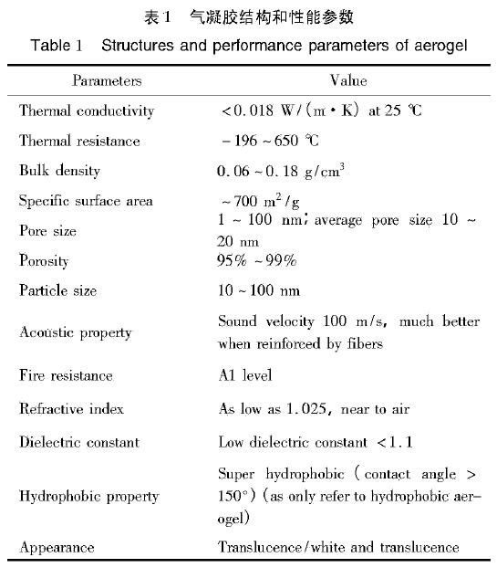 氣凝膠按組分可分為氧化物氣凝膠、有機氣凝膠、炭/石墨烯氣凝膠、碳化物氣凝膠、硫族氣凝膠以及金屬氣凝膠等。氣凝膠材料具備很低的密度, 2013 年報道了密度低至0.16 mg/cm'的很彈性全碳?xì)饽z, 2014年報:道了密度低至0.12mg/cm的很彈性多功能化的三維納米纖維氣凝膠 。氣凝膠材料也是世界上熱導(dǎo)率較低的固體材料,其室溫?zé)釋?dǎo)率低于100 kPa、20 C干空氣的熱導(dǎo)率(0.025 W/(m. K)),被稱為絕熱材料。除此以外,氣凝膠材料還具備高孔隙率、高比表面積、低折射率、低介電常數(shù)等特性,表現(xiàn)出優(yōu)異的光學(xué)、熱學(xué)、聲學(xué)、電學(xué)特性(表1),在工業(yè)保溫、建筑節(jié)能、航空 航天、化工冶金、環(huán)境治理等領(lǐng)域展現(xiàn)出很大的應(yīng)用價值和廣闊的應(yīng)用前景 。2017年10月,Market Re-search.biz的研究報告指出:2016年全球氣凝膠市場價值為5.129億美元,2017 ~ 2026年復(fù)合年增長率預(yù)計為31. 8%,2026年全球氣凝膠市場價值將達(dá)到80. 837億美元。本文即主要對二氧化硅基氣凝膠和有機氣凝膠的發(fā)展進行了論述,同時介紹了氣凝膠在絕熱和吸附領(lǐng)域的研究進展。
